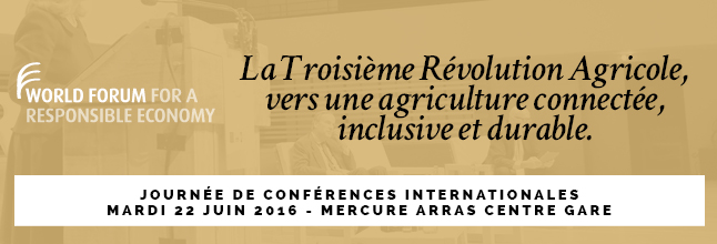 Le World Forum for a Responsible Economy organise une journée de conférences internationales sur le thème « Vers une agriculture connectée, inclusive et durable » le 22 juin à Arras de 9H30 à 17H au Mercure Arras Centre Gare.