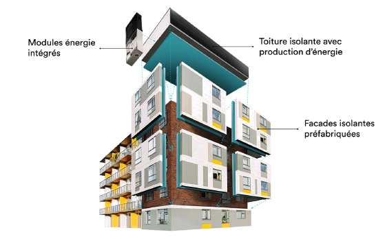 Pour ce faire, elle propose un standard de rénovation à la fois simple et ambitieux (zéro énergie garantie), basé sur une logique de préfabrication et d’industrialisation pour faciliter le changement d’échelle, et qui aligne les intérêts des acteurs de tout l’écosystème.