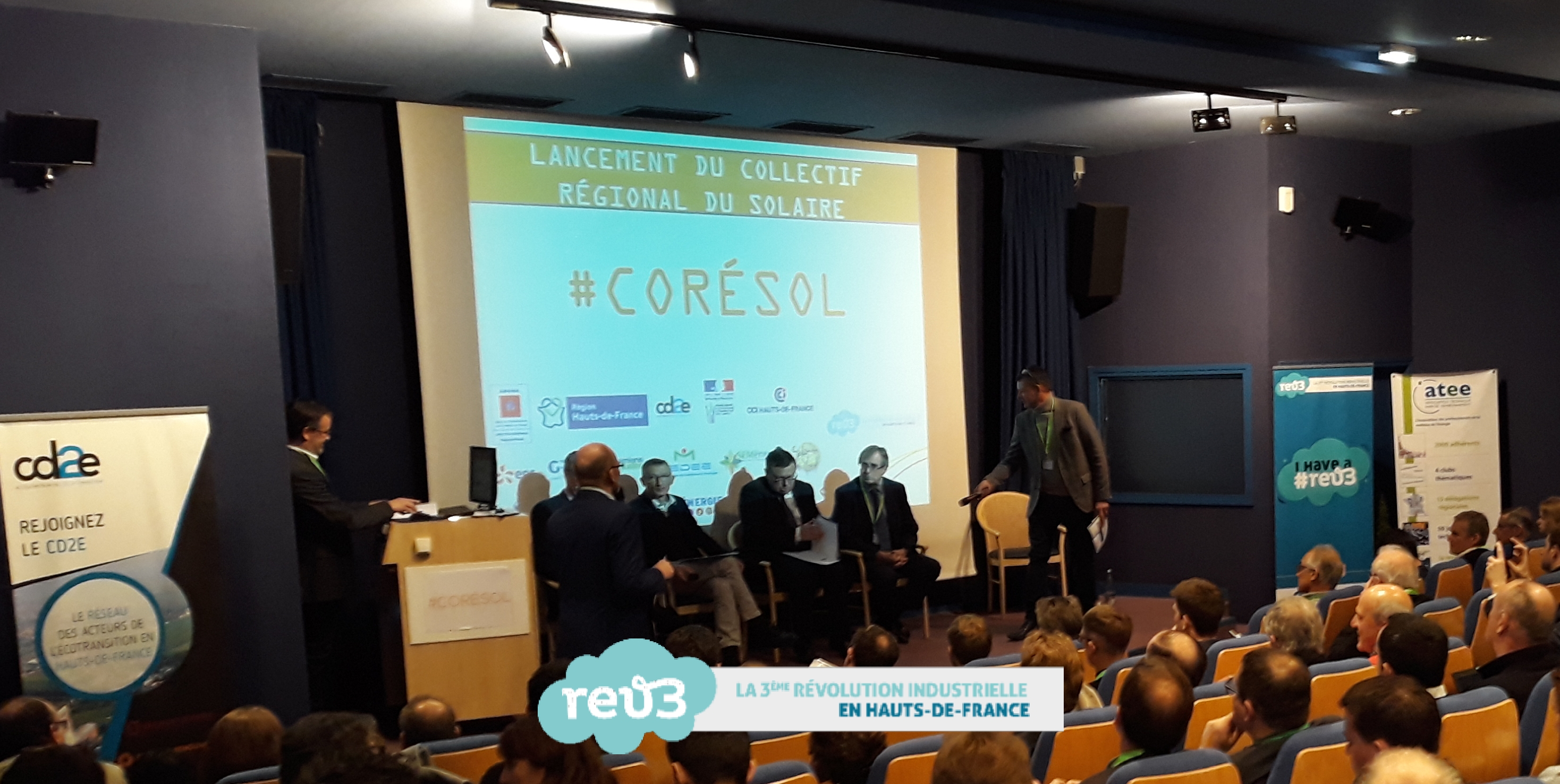 Le 26 mars 2018, à l’occasion de la Journée Technique « Pleins phares sur le photovoltaïque et thermique en Hauts-de-France » organisée par le cd2e et l’ATEE à Douai, la région Hauts-de-France, l’ADEME Hauts-de-France, la CCI de région Hauts-de-France et le cd2e ont lancé le Collectif Régional du Solaire (CORÉSOL).