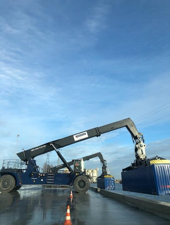 Ces reachstackers de nouvelle génération pèsent 115 Tonnes et sont capables de manutentionner des conteneurs 45 pieds « high cube » en 3ème largeur et 2ème profondeur d’une barge fluviale, en chargement ou déchargement. Soit des boîtes longues de presque 14 mètres, larges de 2,5 m et  hautes de 2,9 m, pesant jusqu’à 34 tonnes.